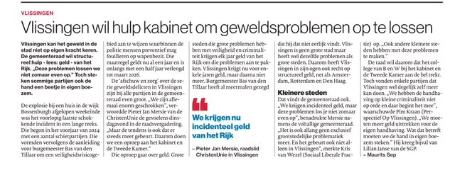 vrijdag 26 september 2025 ChristenUnie heeft initiatief genomen voor een raadsbreed voorstel om structureel geld te vragen aan het Kabinet om de geweldspiraal in Vlissingen te doorbreken.